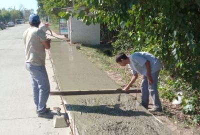 En la diagonal de ingreso a la localidad de Gowland, trabajadores municipales están trabajando en la construcción de veredas que les dan seguridad a los vecinos de la zona que generalmente caminar por allí, ya que es una zona comercial.