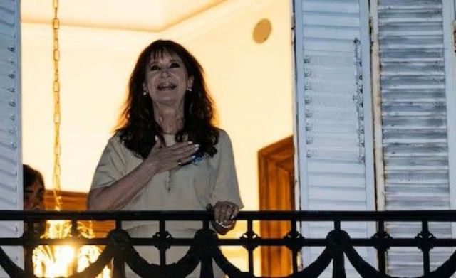 La imagen fue directa: música, una murga en la calle y militantes congregados frente al edificio, mientras la ex presidenta saludaba desde altura. No hubo discurso formal ni un acto anunciado con anticipación. Fue más bien un gesto breve, pensado para ser visto y leído políticamente, con una puesta en escena que buscó mezclar acompañamiento afectivo y mensaje de presencia.