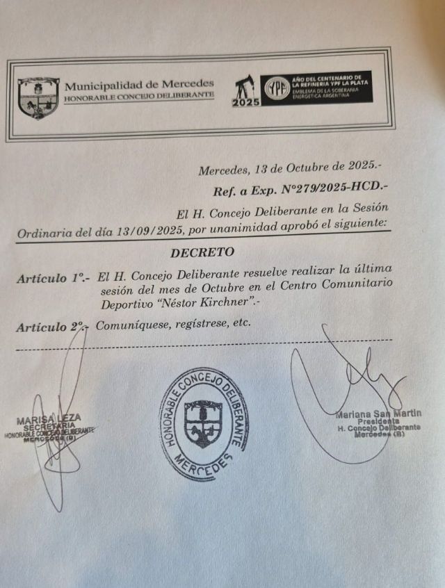 El Honorable Concejo Deliberante de Mercedes confirmó que este lunes volverá a sesionar en territorio barrial. La jornada, prevista para las 19 horas, tendrá lugar en el Centro Comunitario Deportivo Néstor Kirchner, ubicado en la zona del barrio Favaloro, en continuidad con la iniciativa que busca acercar el trabajo legislativo a distintos sectores de la ciudad.