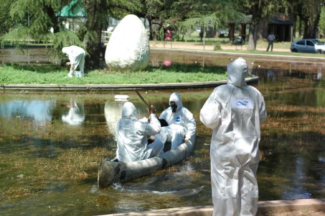 El mérito de Lincoln está en la coreografía. La intervención no se oculta: se celebra a sí misma. Ese gesto, más lúdico que científico, expone el contraste. Un huevo escénico convoca atención sostenida, curiosidad, fotos, circulación y prensa. El agua, en cambio, la que sale de las canillas todos los días, exige menos imaginación pero más gestión.