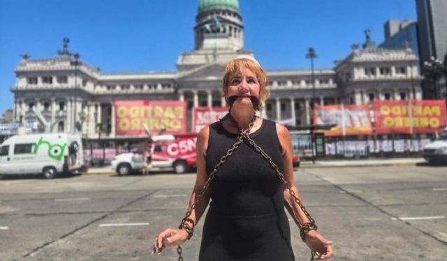 La periodista Nancy Pazos protagonizó este miércoles una protesta simbólica frente al Congreso de la Nación Argentina al encadenarse en uno de los accesos al edificio, en coincidencia con el tratamiento legislativo de la reforma laboral impulsada por el Gobierno nacional. El gesto tuvo como objetivo visibilizar el rechazo a la posible derogación del Estatuto del Periodista Profesional.