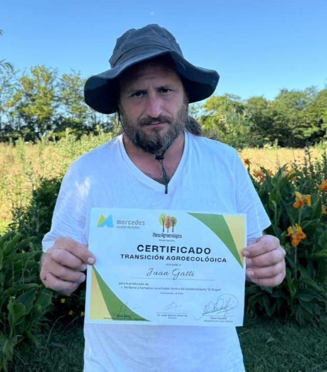 Entre los distinguidos se encuentra Juan Gatti, productor hortícola que viene desarrollando su actividad bajo criterios agroecológicos, con manejo responsable del suelo y sin uso de insumos de síntesis química. Su experiencia representa uno de los caminos más consolidados de la transición en la zona.