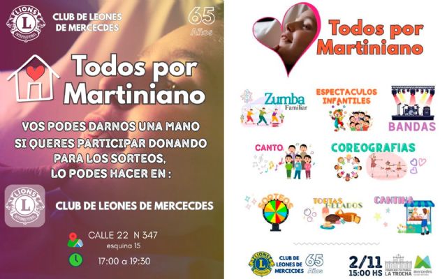 El Club de Leones, con 65 años de presencia ininterrumpida en la ciudad, volvió a convocar a los mercedinos a participar y acompañar, destacando el espíritu solidario que caracteriza a la comunidad. La propuesta busca transformar esa colaboración en una ayuda concreta para Martíniano y su familia en esta difícil etapa.