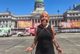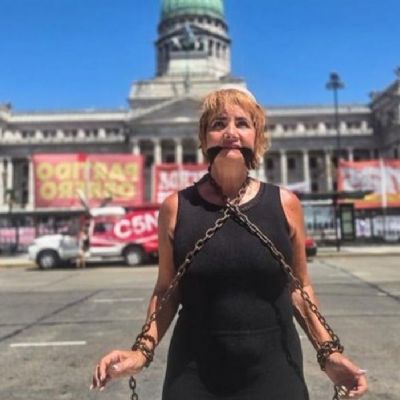 Nancy Pazos se encadenó frente al Congreso